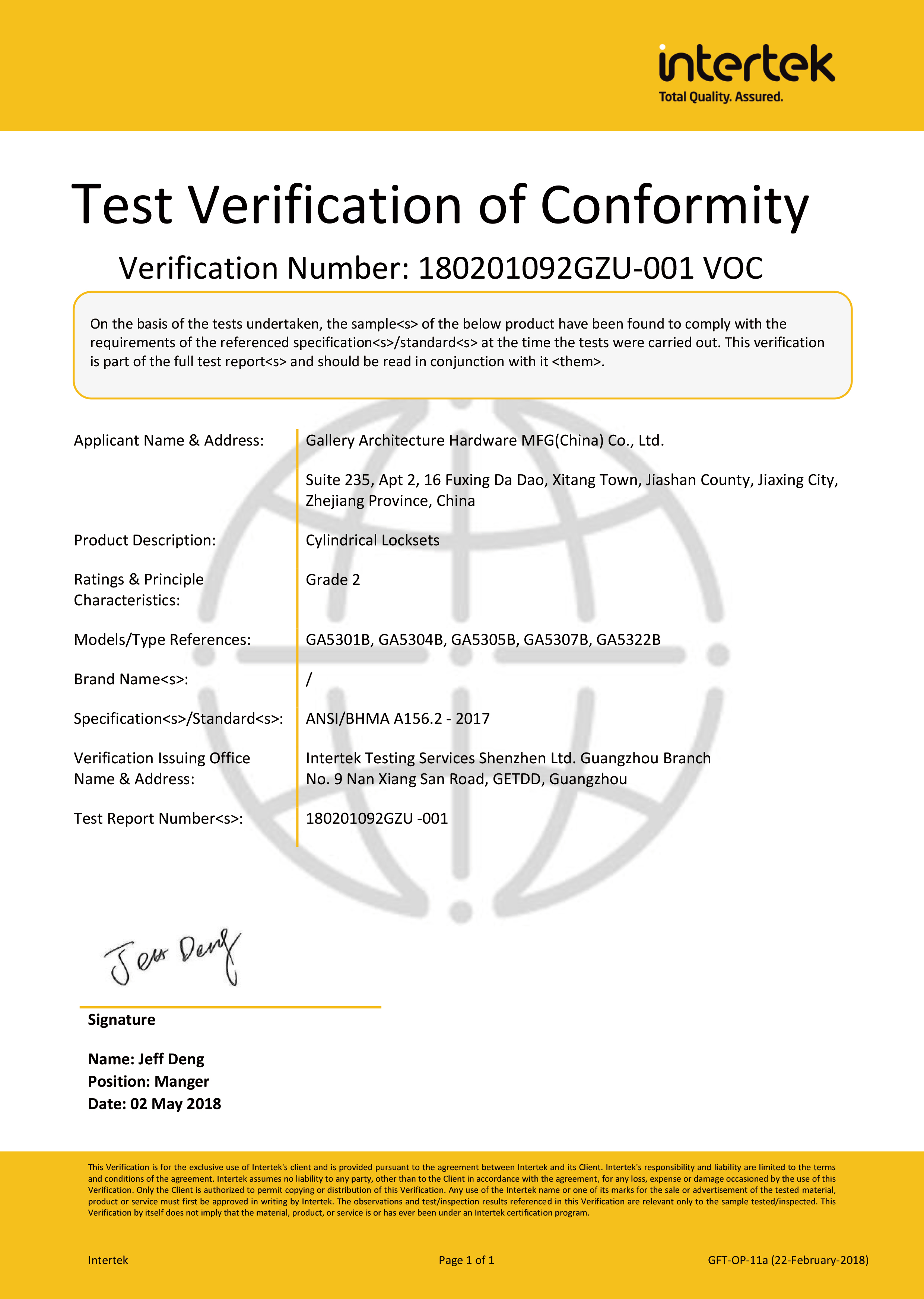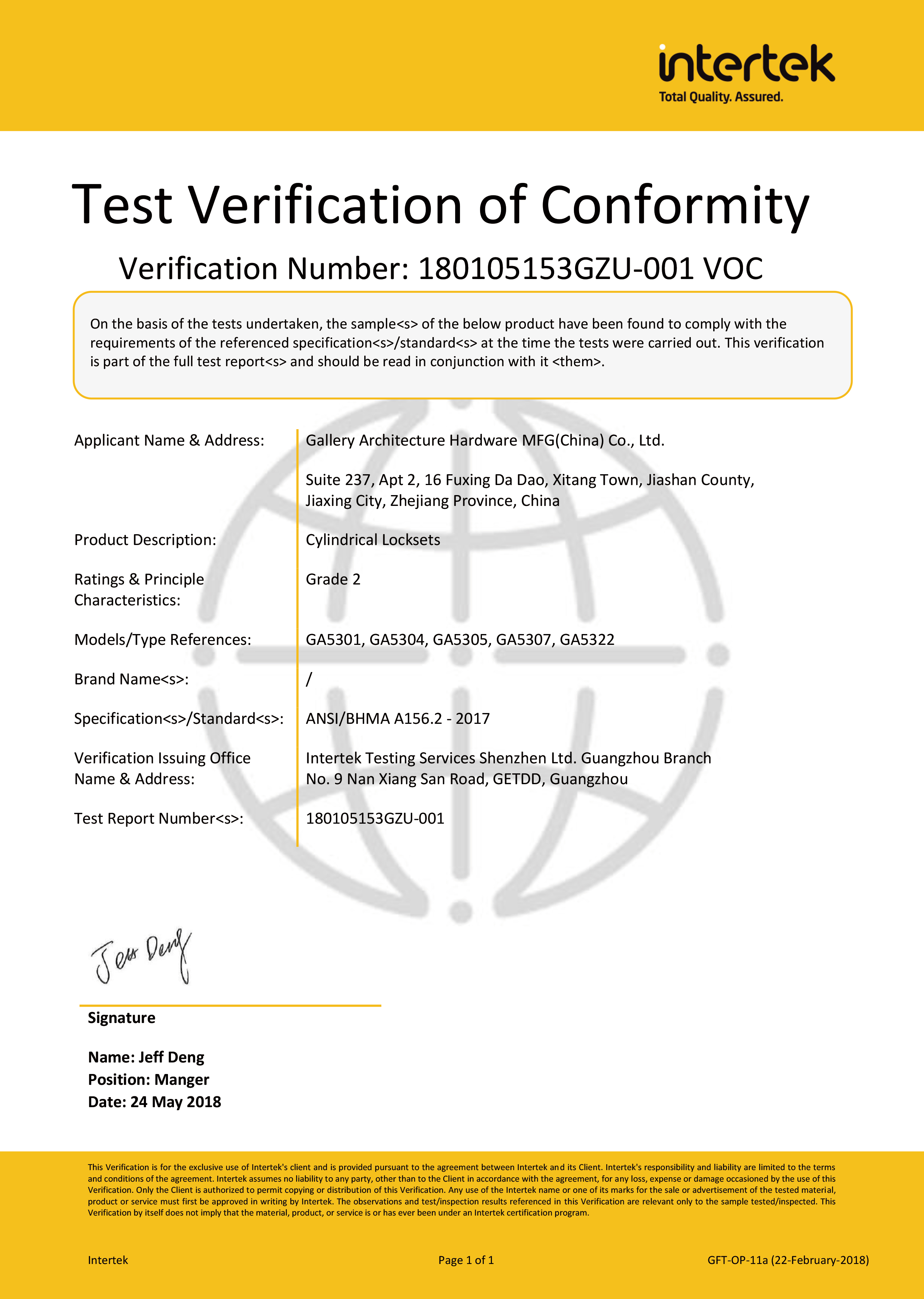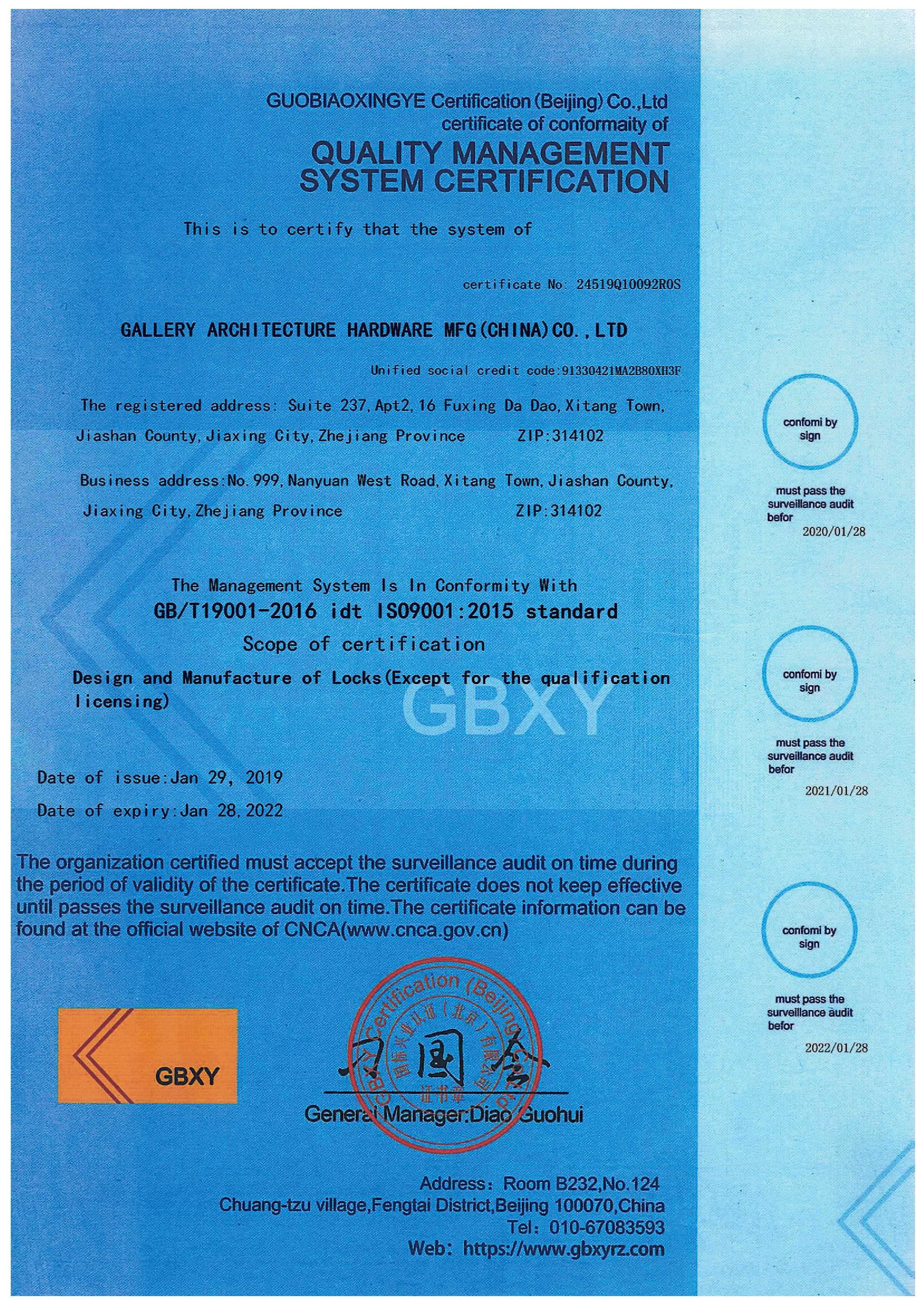 浙江堅(jiān)迪五金制造有限公司始建于 1995 年。自 2003 開(kāi)始,公司致力于高標(biāo)準(zhǔn)商業(yè)鎖的研發(fā)工作,并于 2006 及 2007 年,8700 插芯鎖系列獲得美國(guó)國(guó)家標(biāo)準(zhǔn) ANSI A 156.13-2005 一級(jí)、ANSI A 156.2-2003 二級(jí)和美國(guó) UL 10C3 小時(shí)防火測(cè)試認(rèn)證。自 1998 年以來(lái),公司不斷提升產(chǎn)品和客戶服務(wù)品質(zhì),并獲得了 ISO 9001 的認(rèn)證。